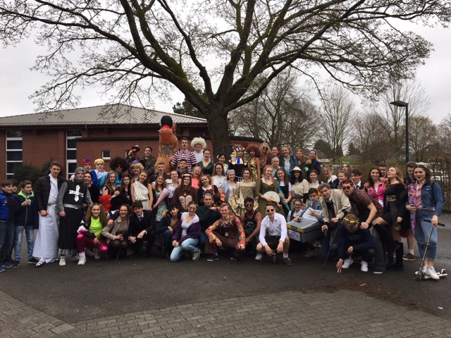 Mit anderen Worten: Die Mottowoche der Abiturienten hat ihren heutigen Höhepunkt gefunden. Das Motto „Zeitreise“ hat alle inspiriert und viele der jüngeren Schüler fasziniert.