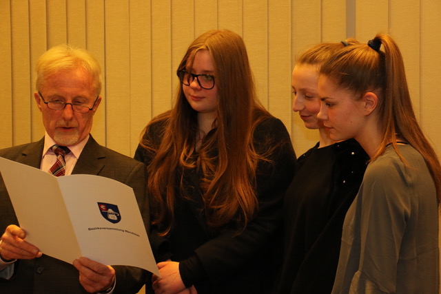 Foto oben: v.l.n.r. Preisverleihung: Heinz-Werner Seier, Janna Hille, Caitlin Hillert Josephine Ravn